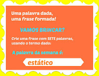 brincar com a palavra da Chica é a BC de hoje onde ela trás a palavra Estatico para que se crie frase com sete palavras, confira nossos amigos e participe também pelo menos nos comentários aqui: sementesdiarias. Geralmente faço uma coleção de frases, mas basta uma. Abaixo as minhas.